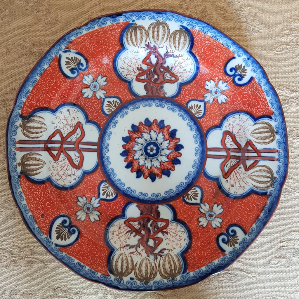 The plate was easily identified by experts as being in the “dollar pattern”, a colourful design copied in any number of detailed variations by many potters from around 1800. The consensus now seems to be that my example was made by either Hackwood & Co of Eastwood or Thomas Harley of Lane End, both in Stoke-on-Trent, Staffordshire.
