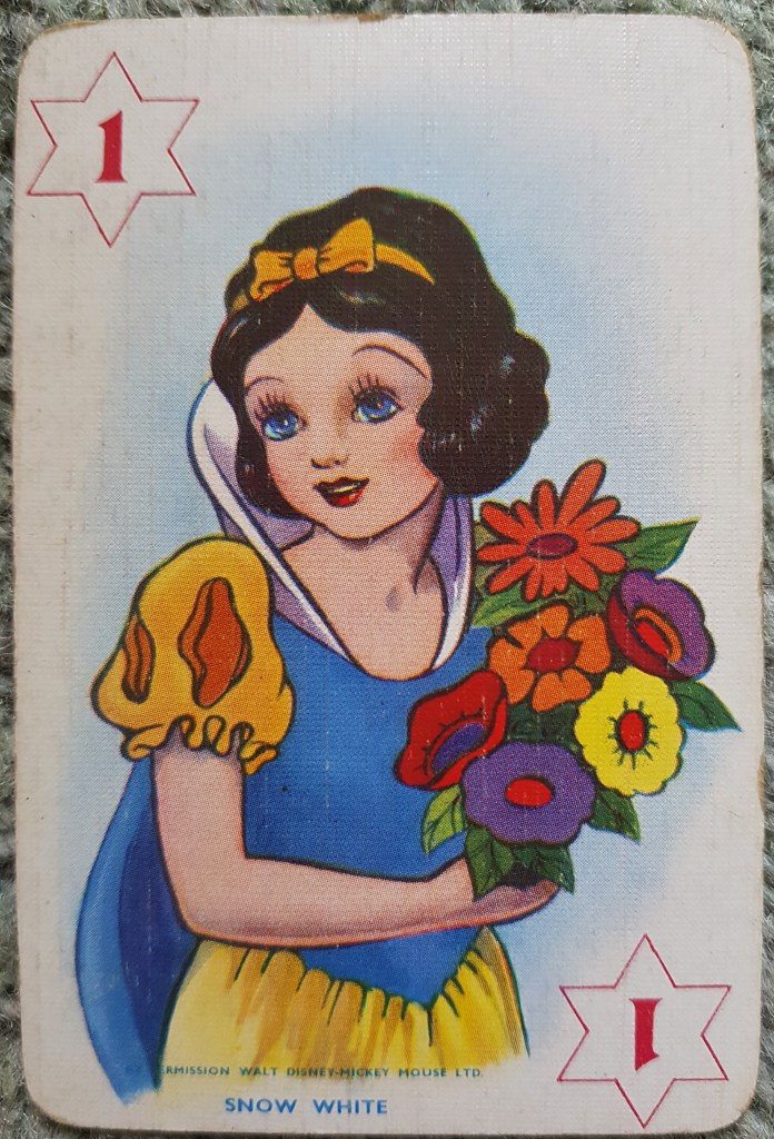 It worked. Two of the card games turned out to be incomplete, and so were unsaleable. Of the eight others, all were used and soiled, and most were lacking their original boxes and instruction sheets and would not be of interest to collectors seeking only perfection. Despite these faults, I listed the eight packs of cards on eBay and sold seven of them. Total proceeds: £65.80. Best individual price: £27.00 for a 1937 card game with Disney designs from the animated film Snow White. Four packs to Texas, one to Leicestershire, two to Suffolk. Not a fortune, but a much better result than could have been got from selling locally, and a good chance to learn a little about an obscure branch of collecting. Elspeth seems quite satisfied with her profit of £54.24, and so am I.
