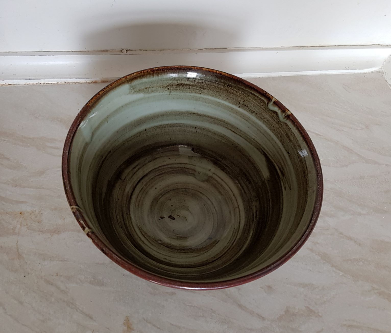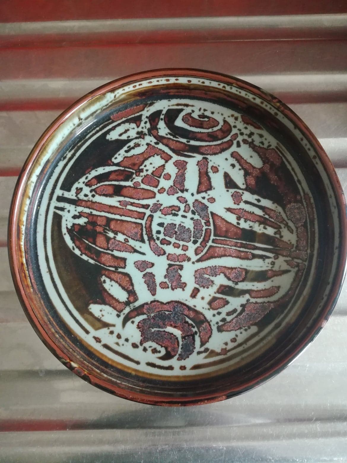 It was agreed that five of Alex’s best pots would be offered as a gift to the Paisley Museum (which has perhaps the best collection of studio pottery in Scotland); and that a group of pieces by other potters would be sent to a Glasgow auctioneer. This group included many from Bernard Leach’s pottery in St Ives, Cornwall, where Alex received his training in the late 1940s and early 1950s. Among these were two bowls (both damaged) bearing the personal seal of the master Bernard Leach himself.