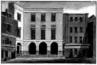 The collaboration of Pugin and Rowlandson worked a treat. As soon as groups of plates were ready for printing, Ackermann began to sell them to his well-to-do customers, firstly in monthly parts and then in bound volumes. His palatial shop and gallery at 101 the Strand, in Central London, was strategically placed for passing trade, just a block away from Somerset House, the then headquarters of the Royal Academy of Arts.