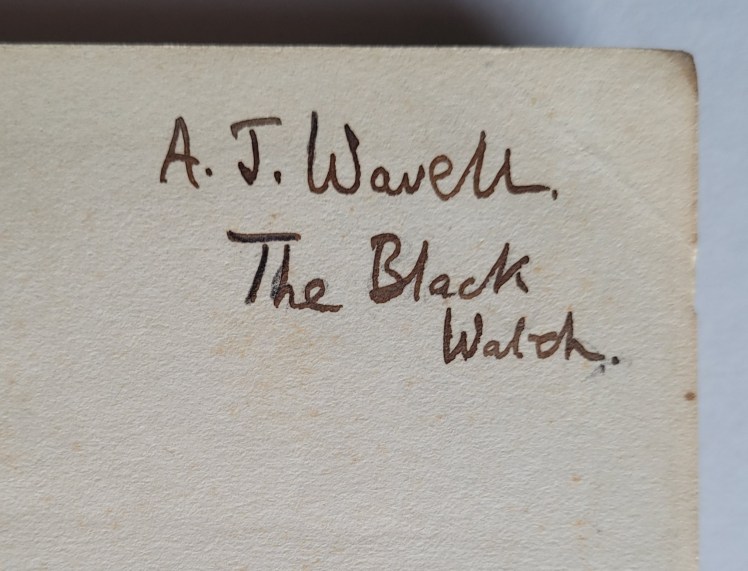 But then, just before deciding disconsolately to give the book a miss and return it to the shop shelf, I happened to notice a small handwritten inscription on the flyleaf. A J Wavell, the Black Watch.